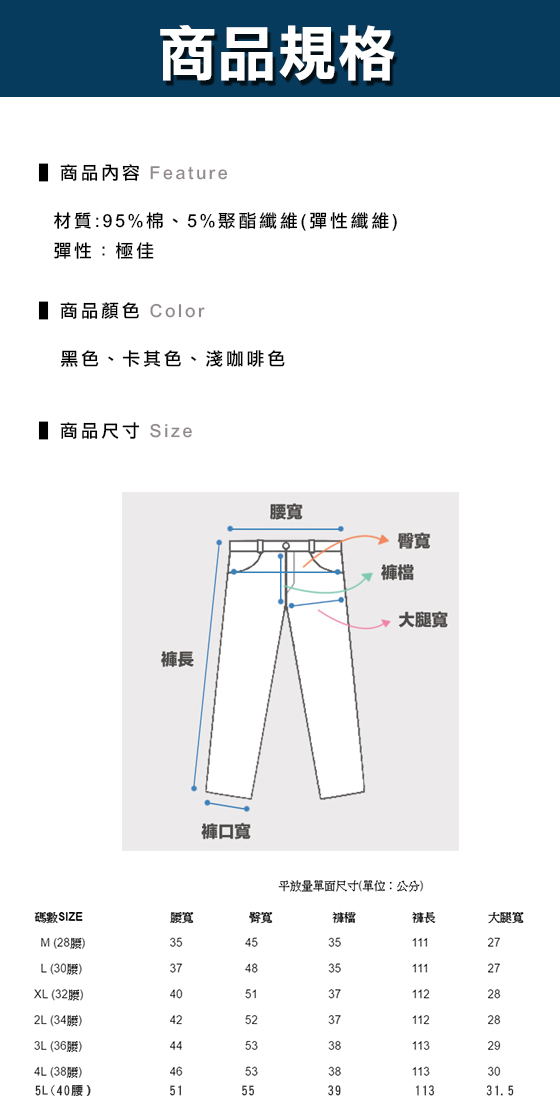 M-5L 機能高彈力透氣輕薄工作褲 顏色:黑/灰/卡其 尺寸:M/L/XL/2L/3L/4L/5L ------------------------------------------------------------------------ 商品說明 |