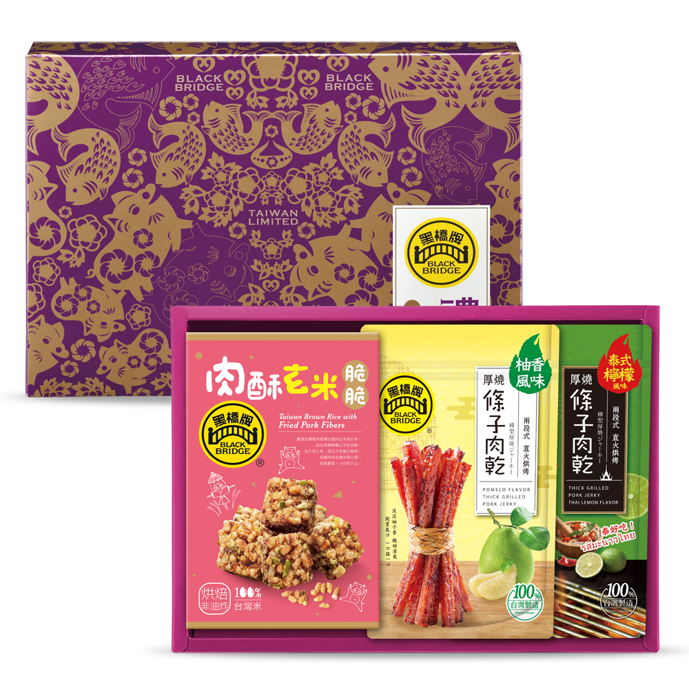 | 【黑橋牌】輕食好味禮好禮盒 內容物 柚香條子肉乾:1包 泰式檸檬條子肉乾:1包 肉酥玄米脆脆:1包 ★ 醃漬16小時/兩段式 直火烘烤 ★ 超0.5cm厚切 ★ 淡淡柚香風味,酸甜清爽 ★ 食用方便免手撕,優雅品嚐豬肉乾 ★ 酸甜微辣泰式風味,搭上淡淡檸檬香 ★ 食用方便免手撕,優雅品嚐豬肉乾 ![]() ★黑橋牌焙炒肉酥 ★玄米與白米比例7:3,多層次米香味,濃厚香醇! ★使用海藻糖,微甜滋味,甜而不膩! ★低溫烘焙,食材不變質 ![]() ![]() ![]() ![]() ![]() 品名:柚香風味厚燒條子肉乾 淨重:125公克 內容物:豬肉、糖、味醂(含蔗糖、糯米)、甘草水(水、甘草)、柚子醬﹝柚子、糖、果糖、水、粘稠劑(羧甲基纖維素鈉)、檸檬酸、粘稠劑(鹿角菜膠)、蜂蜜﹞、蛋白粉、醬油(含大豆、小麥)、食鹽、柚子醬(台灣柚子、金桔汁、糖)、薑粉 食品添加物:甜味劑 (D-山梨醇液70%)、甘油、調味劑(L-麩酸鈉、乳酸鈉液)、柚子香料(香料、水、乙醇、檸檬油)、複方品質改良劑[調味劑(胺基乙酸)、醋酸鈉(無水)、酵素製劑(溶菌酶)]、結著劑(焦磷酸鈉、多磷酸鈉)、調味劑(DL-胺基丙酸)、抗氧化劑(異抗壞血酸鈉)、複方保色劑[食鹽、保色劑(亞硝酸鈉、硝酸鉀)、麥芽糊精]. (*過敏原:本產品含有大豆、小麥及蛋製品) 過敏原資訊:本產品與其它含有魚類、堅果、芝麻及蝦類製品於同一產線生產,食物過敏者請留意。 原產地:台灣 注意:拆封後若未食用完畢,請封口存置冰箱冷藏。 過敏原資訊:本產品與其它含有魚類、堅果、芝麻及蝦類製品於同一產線生產,食物過敏者請留意 本產品採常溫配送 有效日期:請見包裝標示( 西元 /年/月/日) 保存條件:室溫120天,避免放置於潮濕、高溫、日曬場所 以消費者收受日算起,至少距有效日期前60日以上 品名:泰式檸檬厚燒條子肉乾 淨重:125公克 內容物:豬肉、糖、甘草水(水、甘草)、味醂(蔗糖、糯米)、大豆蛋白(非基因改造大豆)、醬油(含大豆、小麥)、辣椒、黑胡椒、食鹽、雞心粉 食品添加物:甜味劑 (D-山梨醇液70%)、調味劑(L-麩酸鈉、乳酸鈉液) 、複方品質改良劑[調味劑(胺基乙酸)、醋酸鈉(無水)、酵素製劑(溶菌酶)] 、檸檬油、結著劑(焦磷酸鈉、多磷酸鈉) 、調味劑(DL-胺基丙酸)、抗氧化劑(L-抗壞血酸鈉)、泰式檸檬香料(香料、抗氧化劑(生育醇))、複方保色劑[食鹽、保色劑 (亞硝酸鈉、硝酸鉀) 、麥芽糊精]. (*過敏原:本產品含有大豆、小麥製品) 原產地:台灣 注意:拆封後若未食用完畢,請封口存置冰箱冷藏。 過敏原資訊:本產品與其它含有魚類、堅果、芝麻、蛋及蝦類製品於同一產線生產,食物過敏者請留意。 本產品採常溫配送 有效日期:請見包裝標示( 西元 /年/月/日) 保存條件:室溫120天,避免放置於潮濕、高溫、日曬場所 以消費者收受日算起,至少距有效日期前60日以上 品名: 肉酥玄米脆脆 淨重:120公克 內容物名稱(成分):黑橋牌肉酥 [豬腿肉、糖、甘草水(水、甘草)、食鹽、醬油(含大豆、小麥)、味醂(蔗糖、糯米)、自榨豬油、麵粉(含小麥)]、海藻糖、麥芽糖(樹薯澱粉、麥芽酵素、水、珍珠岩粉(過濾用))、南瓜子、糙米(玄米)、杏仁、白米、鹽、海苔 (過敏原:本產品含有大豆、含麩質穀物、堅果類、種子類製品) 有效日期:請見包裝標示 (西元 /年/月/日) 保存條件 :常溫保存6個月,避免高溫、日照、潮濕等場所。 注意: 拆封後避免受潮軟化,請儘快食用完畢。 本產品採常溫配送 以消費者收受日算起,至少距有效日期前3個月以上 有效日期:請見包裝標示 (西元 /年/月/日) 原產地: 台灣 |